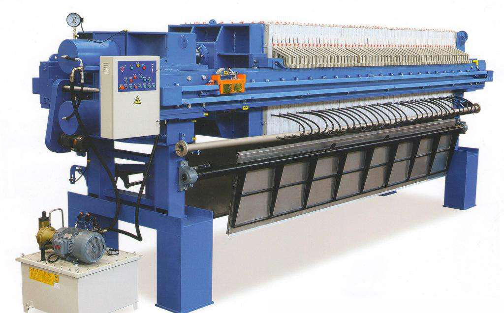 板框壓濾機(板框式壓濾機)由交替排列的濾板和濾框構成一組濾室。濾板的表面有濾點,其凸出部位用以支撐濾布。濾框和濾板的邊角上有通孔,組裝后構成完整的通道,能通入懸浮液、洗滌水和引出濾液。