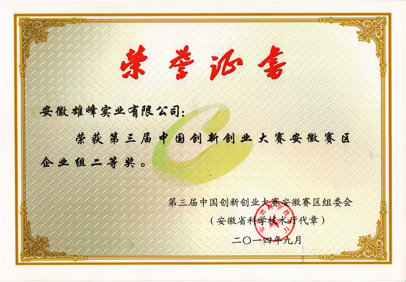 第三屆中國創(chuàng)新創(chuàng)業(yè)大賽獲獎證書